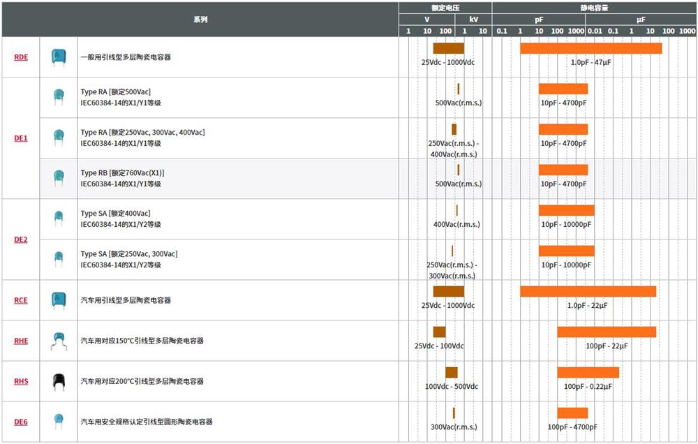 村田電容器主要分為:陶瓷電容器 (引線型) 陶瓷電容器 (SMD)