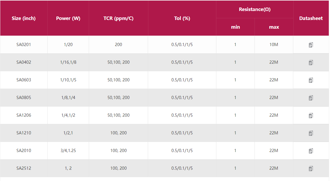 車用電阻 產品型號:
